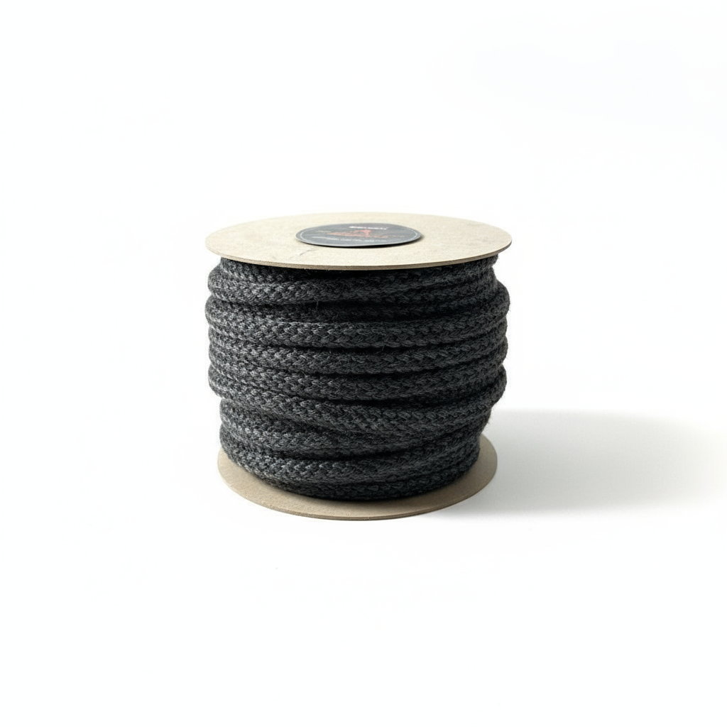 This heat-resistant sealing cord is specially designed for use with wood stoves, fireplaces, and flue systems. Made from knitted E-glass fiber with a black graphite coating, it offers flexibility, durability, and resistance to temperatures up to 550 °C.