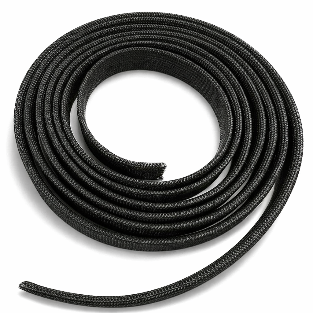 The sleeve is meticulously woven from fiberglass yarn and coated with a black thermal coating. This coating provides an attractive black finish and prevents fraying. While the addition of the coating makes the sleeve slightly less flexible, this does not significantly impact ease of installation and functionality. The high level of protection and durability makes this sleeve an ideal choice for applications where safety and reliability are essential.