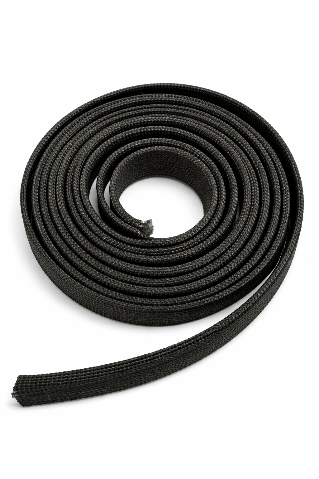 The sleeve is meticulously woven from fiberglass yarn and coated with a black thermal coating. This coating provides an attractive black finish and prevents fraying. While the addition of the coating makes the sleeve slightly less flexible, this does not significantly impact ease of installation and functionality. The high level of protection and durability makes this sleeve an ideal choice for applications where safety and reliability are essential.